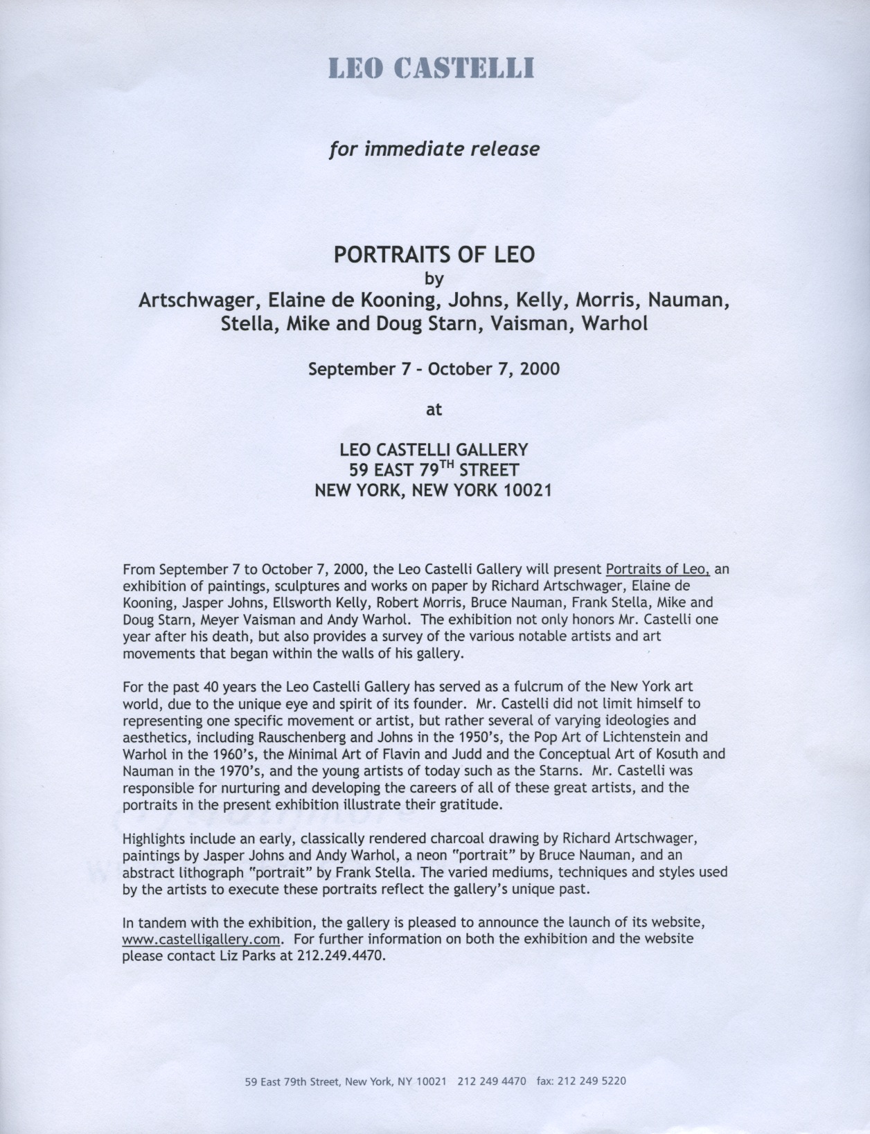 Exhibition Announcement (back), Portraits of Leo