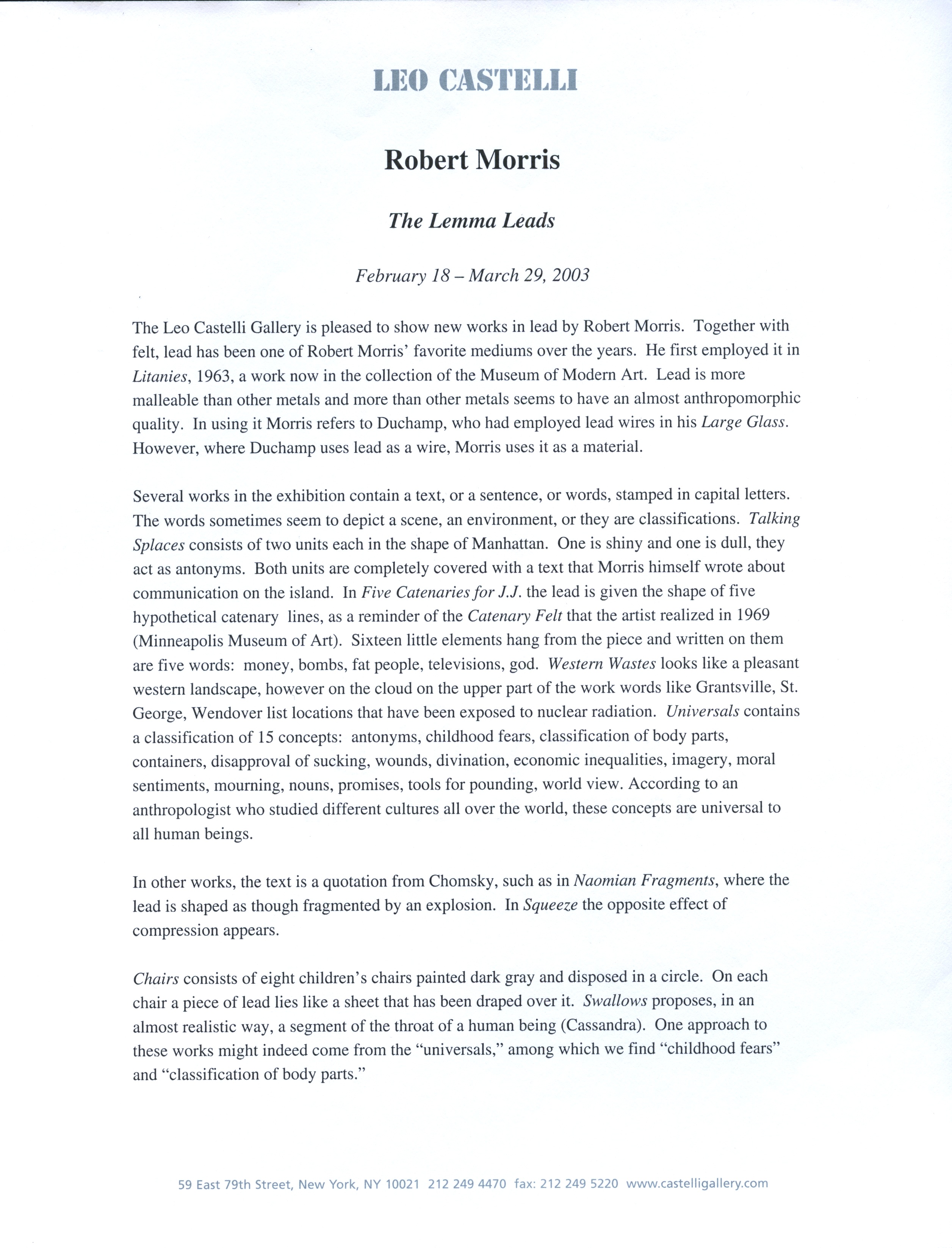 Robert Morris: Lemma Leads
